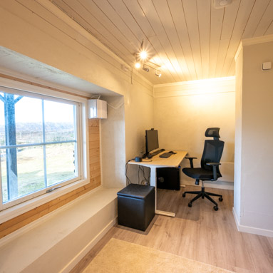 Built in 2012 the house sits on the foundations of the original farmhouse. There are 2 floors with a total living space of about 125m2. On the main floor you will find 4 bedrooms, a bathroom, a spacious living room and kitchen with dining area. There is also a large accessible westwards facing balcony. In the cellar you will find a cozy second living room and an office space.